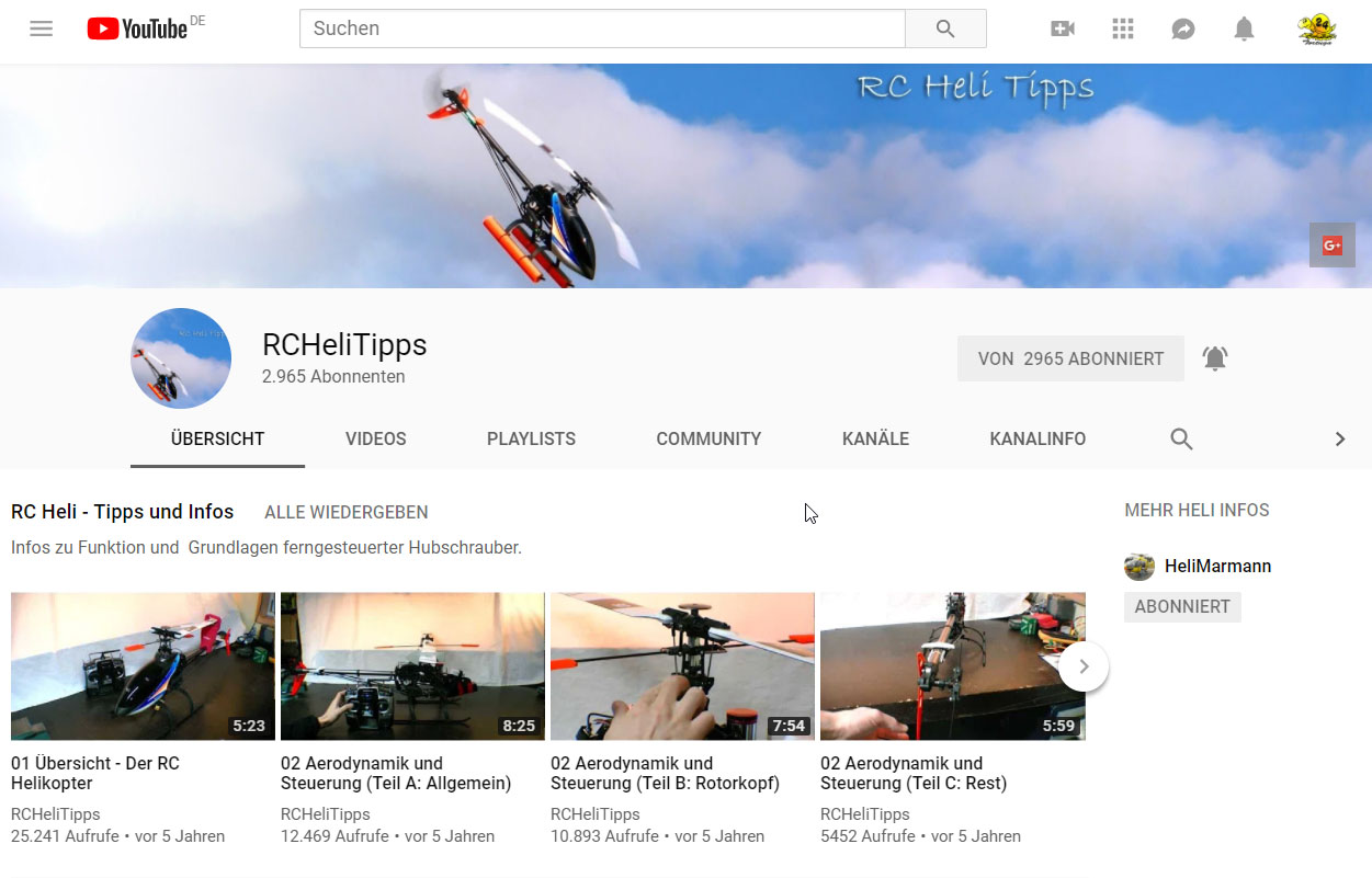RC Heli Tipps ist ein Youtube Kanal mit vielen Info Videos für Einsteiger aber auch fortgeschrittene Piloten.