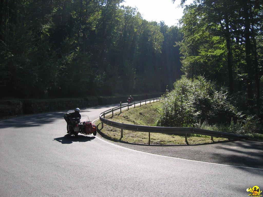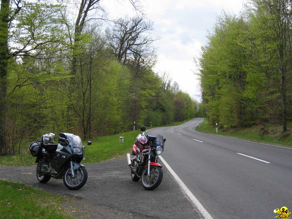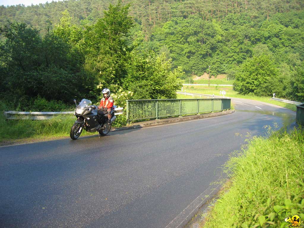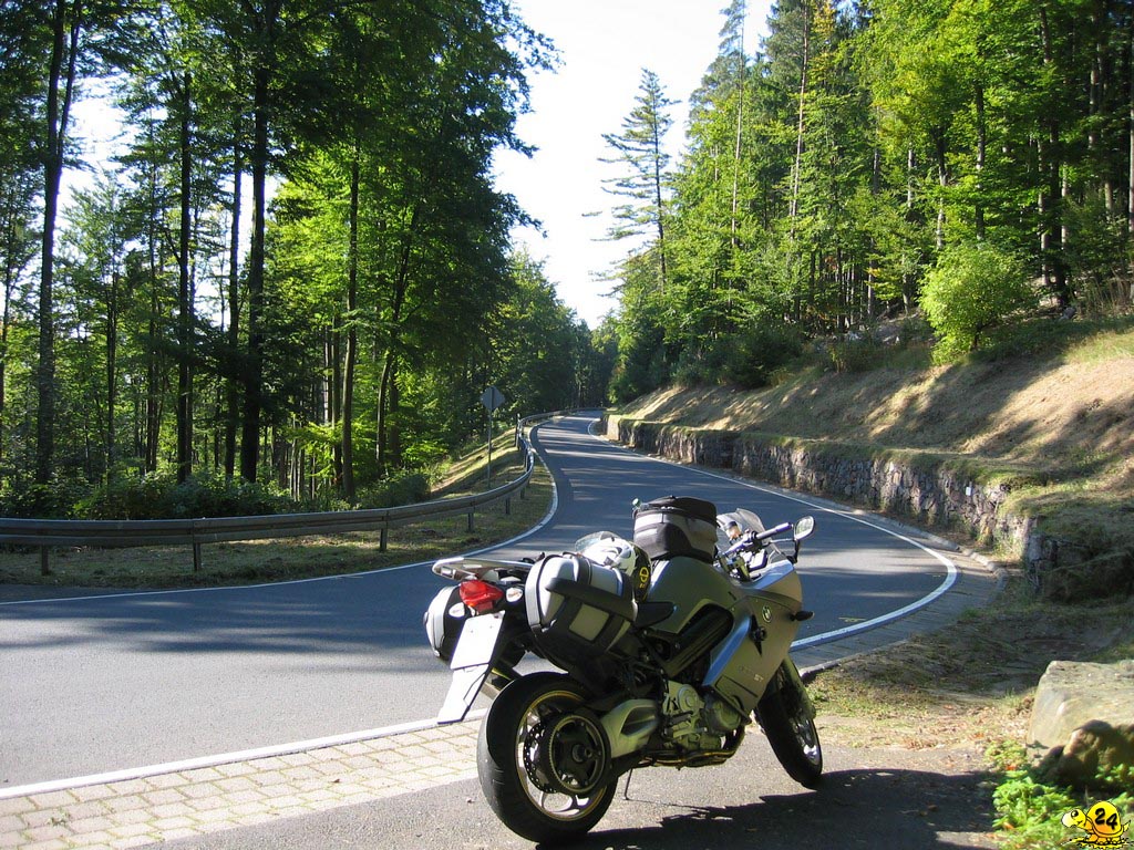 Kurzentschlossenheit wird belohnt und so sagte ich zwei Tage vor Abfahrt zu, für einen Freund einzuspringen und mit nach Frankreich zu fahren. Allerdings fiel mir danach ein, dass ich mich für den Samstag der Abreise mit den TRX-Freunden verabredet hatte, um eine Runde durch den Taunus zu drehen. So etwas kann man ja auch nicht absagen und man hat ja jetzt ein bequemes Motorrad, da werden so ein paar hundert Kilometer schon nichts ausmachen. Freitags Abend wurde das Gepäck vorbereitet, diesmal noch zusätzlich mit Gepäckrolle, da Schlafsack und Isomatte auch mit mussten. Samstagvormittag wurden es knapp 200 km zügiges fahren rund um den Feldberg und durch das Weiltal. Danach eine Stunde ausruhen, beladen und ab Richtung Süden. Bis Saarbrücken ging es ca. 200 km über die Autobahn. Über 140 km/h war der Wind nicht sehr angenehm, sodass ich meist gemütlich mit 120-140 km/h unterwegs war. Kurz hinter Saarbrücken überquerte ich die Grenze und es folgten knapp 100 km Landstraßen zum Ziel. Ich war zwar ziemlich geschafft und hatte Hunger, trotzdem konnte ich mich auf die Tour am nächsten Tag freuen, welche uns mehr als 200 km über die schönen Straßen von Elsass, Lothringen und Vogesen führen sollten. Hier zeigte sich endgültig das ein Garmin GPS60csx, welches ich eigentlich für den Offroad Einsatz gekauft hatte, auch auf der Straße eine super Sache ist. Die Route hatte ich am PC vorgeplant und so konnten wir den ganzen Tag die französischen Landstraßen genießen, ohne uns um Kartenlesen oder ähnliche Dinge Gedanken zu machen. Die Landschaft war ausnahmslos wunderschön und die Straßen, teils nur einspurige Wege, waren größtenteils von guter Qualität und machten sehr viel Spaß. Auch nach diesem Tag war meine Lust auf Motorradfahren nicht verschwunden, sodass am nächsten Tag vor meiner, berufsbedingt früheren, Heimreise noch einige gemeinsame Umwege geplant wurden. Der Rückweg in den Taunus erfolgte mit mehr Landstraßenanteil als der Hinweg. Es hat mich sehr beeindruckt und erfreut wie zügig man mit der BMW trotz der Beladung, mit Koffer, Tankrucksack und Gepäckrolle, noch fahren kann. Am Ende des verlängerten Wochenendes standen mehr als 1.000 km zusätzlich auf dem Tacho. Ich war mir jetzt sehr sicher das richtige Motorrad zu haben, zumal selbst der Kollege auf der 1200GS am zweiten Tag ein wenig jammerte und nicht mehr all zu viel fahren wollte. Ich muss zwar zugeben, dass ich am Tag nach der Heimreise auch mit dem Auto zur Arbeit gefahren bin, aber ich habe keinen Kilometer bereut und sehr viel Spaß gehabt!