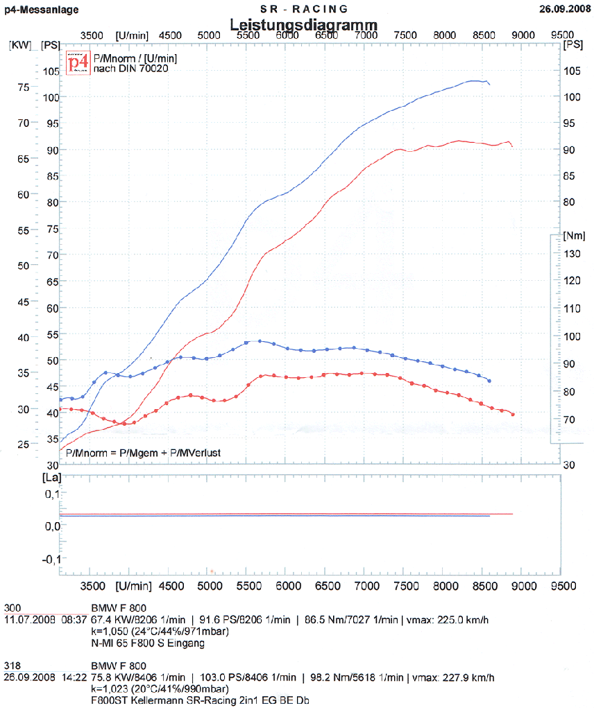 Nach ein wenig Plaudern mit dem Chef stand meine BMW auf einmal auf dem Prüfstand. Nachdem ich seine Aussage zu zweistelligen Leistungszuwächsen eher skeptisch betrachtet habe, wollte er wohl beweisen was sein Auspuff kann. Obwohl ich rein vom Gefühl her schon gemerkt habe, dass die Anlage etwas an Leistung bringt und die Drehmomentdelle mildert, hat mich das Ergebnis des Prüfstandslaufs überrascht.